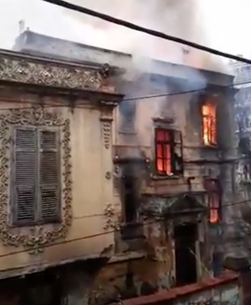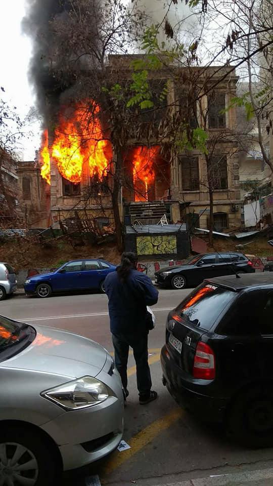 Στις φλόγες παραδόθηκε πριν λίγη ώρα ένα από τα τελευταία υπέροχα κτίσματα της περιοχής της Λ. Στρατού, την Οικία Αβδουραχμάνοβιτς.
