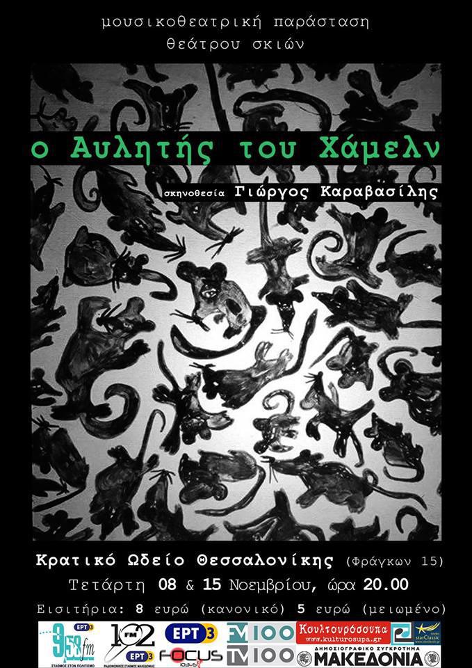 «Ο Αυλητής του Χάμελν», ένας λαϊκός μύθος καταγεγραμμένος από τους αδερφούς Γκριμ, είναι ένα περιπετειώδες κλασσικό παραμύθι για μικρούς και μεγάλους που επιχειρεί να διασκεδάσει και να προβληματίσει το θεατή σχετικά με το διαχρονικό ζήτημα της χαμένης αθωότητας. Επί σκηνής θα βρίσκονται ένας ηθοποιός και δύο μουσικοί για να ταξιδέψουν το κοινό σ’ έναν μαγικό κόσμο μυστηρίου και φαντασίας. Όχημα τους, η ζωντανή μουσική, το θέατρο σκιών και η συνεχής εναλλαγή ρόλων.
