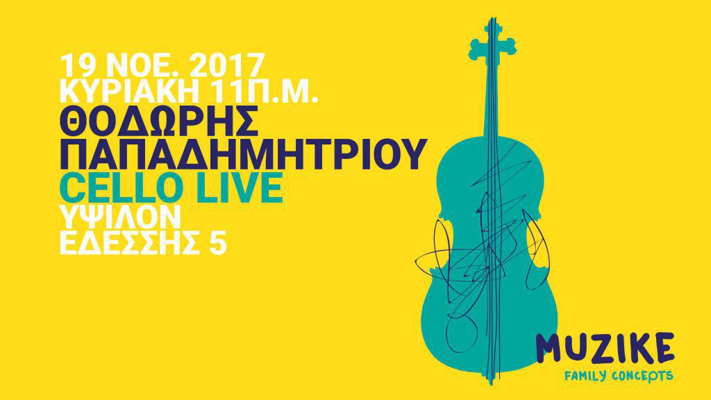 Την Κυριακή 19 Νοεμβρίου ξεκινάμε τις συναυλίες του muzike. family conceρts, στο Ύψιλον στην οδό Εδέσσης 5. Στο Family Conceρt #01: Cello muzike ο τσελίστας Θοδωρής Παπαδημητρίου θα παίξει μέρη από τις σουίτες για σόλο τσέλο του J. S. Bach, αυτοσχεδιασμούς σε αναγεννησιακά θέματα, τραγούδια των Radiohead και U2, live looping και πρωτότυπες συνθέσεις του ιδίου. Ο Θοδωρής Παπαδημητρίου γεννήθηκε στη Θεσσαλονίκη. Είναι απόφοιτος του Τμήματος Μουσικών Σπουδών του ΑΠΘ, έχει μεταπτυχιακό στη διεύθυνση ορχήστρας και έχει σπουδάσει τσέλο, πιάνο και θεωρητικά. Είναι μαέστρος της συμφωνικής ορχήστρας νέων του ΜΜΘ (MOYSA) και διευθύνει τις ορχήστρες του Νέου Ωδείου Θεσσαλονίκης.Έχει εργαστεί στη δευτεροβάθμια εκπαίδευση ως αναπληρωτής καθηγητής (Μουσικά Σχολεία Θεσσαλονίκης, Σερρών και Κατερίνης) και στην τριτοβάθμια ως συμβασιούχος διδάσκων (Τμήμα Κινηματογράφου ΑΠΘ). Συνθέτει μουσική για το θέατρο και τον κινηματογράφο, καθώς και έργα εκπαιδευτικού χαρακτήρα για τα ορχηστρικά μουσικά σχήματα που διευθύνει. Ώς τσελίστας έχει συμπράξει επί σκηνής και έχει ηχογραφήσει με διάφορους καλλιτέχνες και μουσικά σχήματα της πόλης. Οι θέσεις είναι περιορισμένες. Για να εξασφαλίσετε τη θέση σας, αγοράστε νωρίτερα το εισιτήριό σας απο το χώρο του Ύψιλον. Η προπώληση ξεκινάει την Τρίτη 14 Νοεμβρίου.