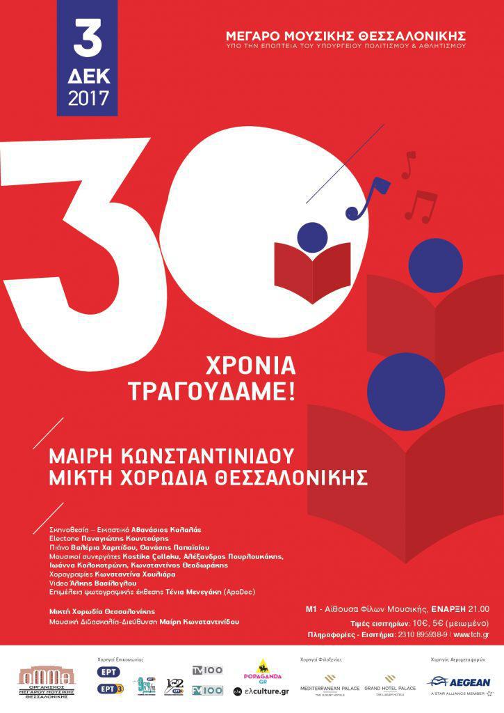 Την Κυριακή, Επετειακή συναυλία ΜΙΚΤΗΣ ΧΟΡΩΔΙΑΣ ΘΕΣΣΑΛΟΝΙΚΗΣ«30 χρόνια τραγουδάμε !» στο Μέγαρο Μουσικής Θεσσαλονίκης Μ1 – Αίθουσα Φίλων Μουσικής