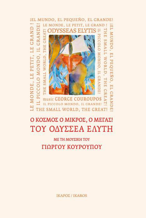 Την Πέμπτη 9 Νοεμβρίου στις 19:00, το Institut Français de Grèce, το British Council, το Instituto Cervantes de Atenas, το Istituto Italiano di Cultura di Atene και οι εκδόσεις Ίκαρος, σας προσκαλούν στη παρουσίαση της έκδοσης «Ο κόσμος ο μικρός, ο μέγας!» του Οδυσσέα Ελύτη με τη μουσική του Γιώργου Κουρουπού, που θα πραγματοποιηθεί στο Auditorium Theo Angelopoulos του Γαλλικού Ινστιτούτου. Την έκδοση θα παρουσιάσει ο David Connolly. Θα μιλήσουν οι: Ιουλίτα Ηλιοπούλου, Γιώργος Κουρουπός, Κατερίνα Καρύδη.Ποιήματα στις διαφορετικές γλώσσες θα διαβάσουν οι:David Connolly, Paola Maria Minucci, Béatrice Stellio Connolly, Νίνα Αγγελίδου.