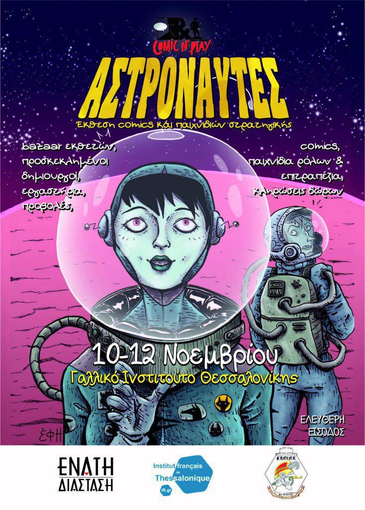 Η Ένατη Διάσταση, σε συνεργασία με το Γαλλικό Ινστιτούτο Θεσσαλονίκης και τον Ελληνικό Σύλλογο Φίλων Ιστορίας & Παιχνιδιών Στρατηγικής (Ε.Σ.Φ.Ι.Π.Σ) διοργανώνουν την 16η Έκθεση Κόμικς και Επιτραπέζιων Παιχνιδιών Comic’n Play 2017 που θα πραγματοποιηθεί στις 10, 11 και 12 Νοεμβρίου 2017, στη Θεσσαλονίκη. Από το 2001, η έκθεση αυτή αποτελεί ένα σταθερό ετήσιο ραντεβού δημιουργίας και ελεύθερης έκφρασης, καθιστώντας την τη μακροβιότερη έκθεση κόμικς στη χώρα μας. Στην έκθεση συμμετέχουν δημιουργοί απ’ όλη την Ελλάδα, όλων των ηλικιών, έμπειροι και πρωτοεμφανιζόμενοι. Από την Παρασκευή 10 Νοεμβρίου 2017 έως και την Κυριακή 12 Νοεμβρίου στο Γαλλικό Ινστιτούτο Θεσσαλονίκης θα διεξαχθεί μια πολύμορφη εκδήλωση γεμάτη κόμικς και επιτραπέζια παιχνίδια, bazaar ελληνικών, ξενόγλωσσων και μεταχειρισμένων εκδόσεων κόμικς. Θα απολαύσει κανείς επίσης την έκθεση αυτοχρηματοδοτούμενων εκδόσεων, αλλά και πρωτότυπα έργα, εργαστήρια και επιτραπέζια παιχνίδια με διαγωνισμούς με έπαθλα για τους επισκέπτες. Θα συναντήσει κανείς ξένους προσκεκλημένους, εκδοτικούς οίκους εξειδικευμένους στα κόμικς και πολλές ακόμα εκπλήξεις.