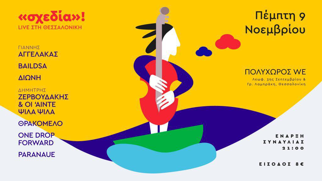Η Πέμπτη 9 Νοεμβρίου είναι η μέρα που η Θεσσαλονίκη θα επιβαστεί σε μια μουσική σχεδία! Είναι η μέρα, για την ακρίβεια, που θα πραγματοποιηθεί η συναυλία του περιοδικού δρόμου «σχεδία» στον πολυχώρο WE. Ο Γιάννης Αγγελάκας, οι Baildsa, η Διώνη, το Θρακόμελο, ο Δημήτρης Ζερβουδάκης & και οι ‘Αιντε Ψιλά Ψιλά, οι One Drop Forward και οι Paranaue θα ενώσουν τις φωνές τους με τους φίλους του ελληνικού περιοδικού δρόμου σε μια συναυλία και κινητοποίηση μαζί για μια δίκαιη κοινωνία, μια κοινωνία χωρίς αποκλεισμούς, χωρίς φτώχεια, ακόμη και χωρίς «σχεδία».