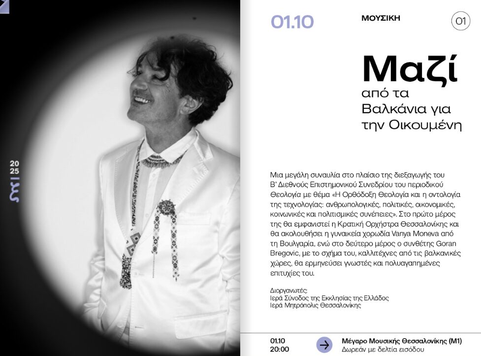 Μια μεγάλη συναυλία στο πλαίσιο της διεξαγωγής του Β’ Διεθνούς Επιστημονικού Συνεδρίου του περιοδικού Θεολογία με θέμα: «Η Ορθόδοξη Θεολογία και η οντολογία της τεχνολογίας: ανθρωπολογικές, πολιτικές, οικονομικές, κοινωνικές και πολιτισμικές συνέπειες».