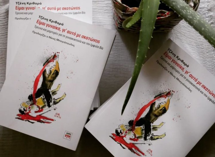 Η δημοσιογράφος Τζένη Κριθαρά συγκεντρώνει εμπειρίες γυναικών και στοιχεία για τις γυναικοκτονίες μέσα σε ένα βιβλίο με τίτλο «Είμαι γυναίκα, γι’ αυτό με σκοτώνεις». Δέκα γυναίκες αφηγούνται στην ίδια τις δικιές τους ιστορίες. Γυναίκες που κακοποιήθηκαν λόγω του φύλου τους περιγράφουν μέσα από τα σκληρά βιώματά τους πώς γεννάται, πώς εκφράζεται και πώς συγκαλύπτεται το έμφυλο έγκλημα.