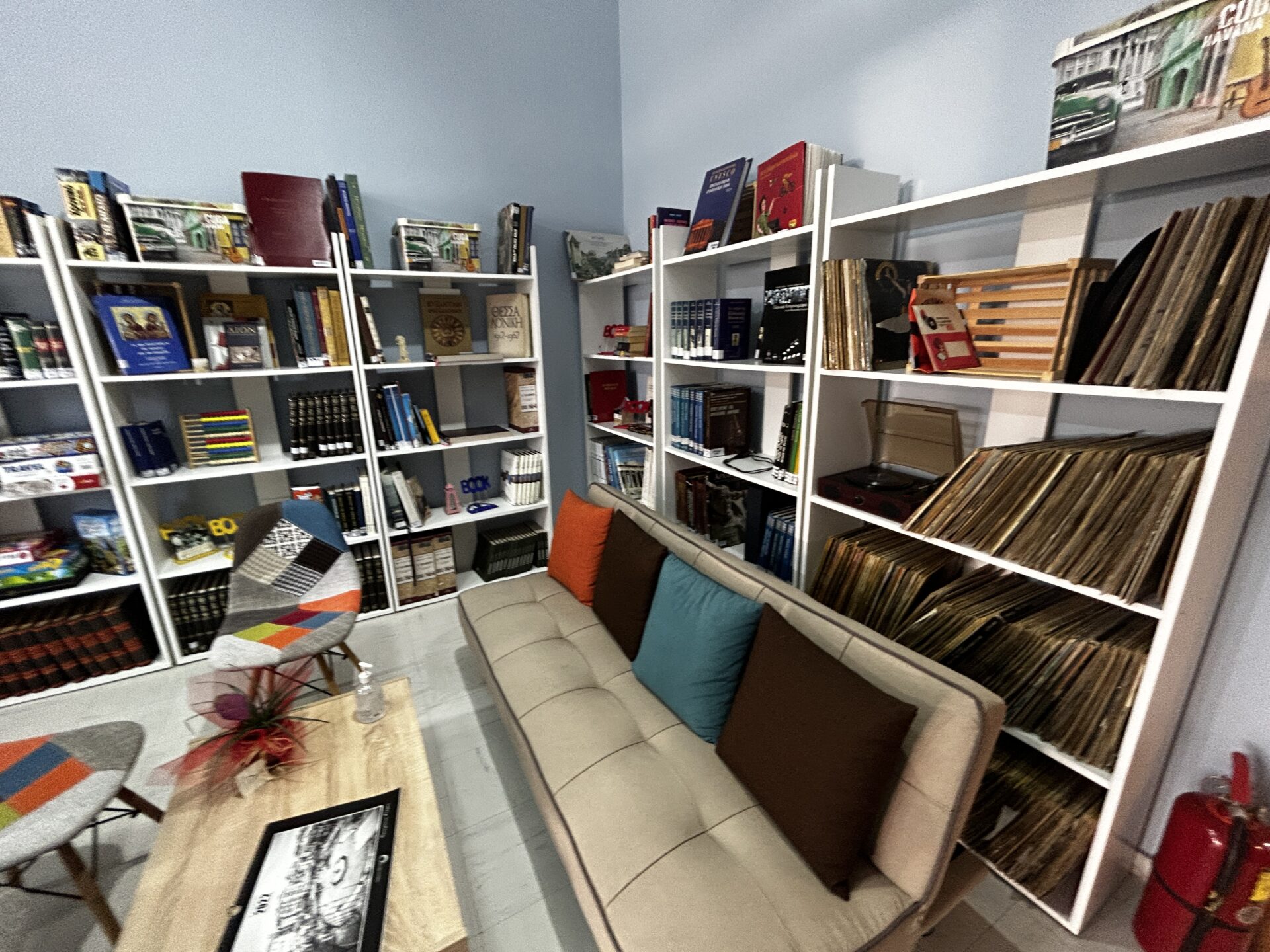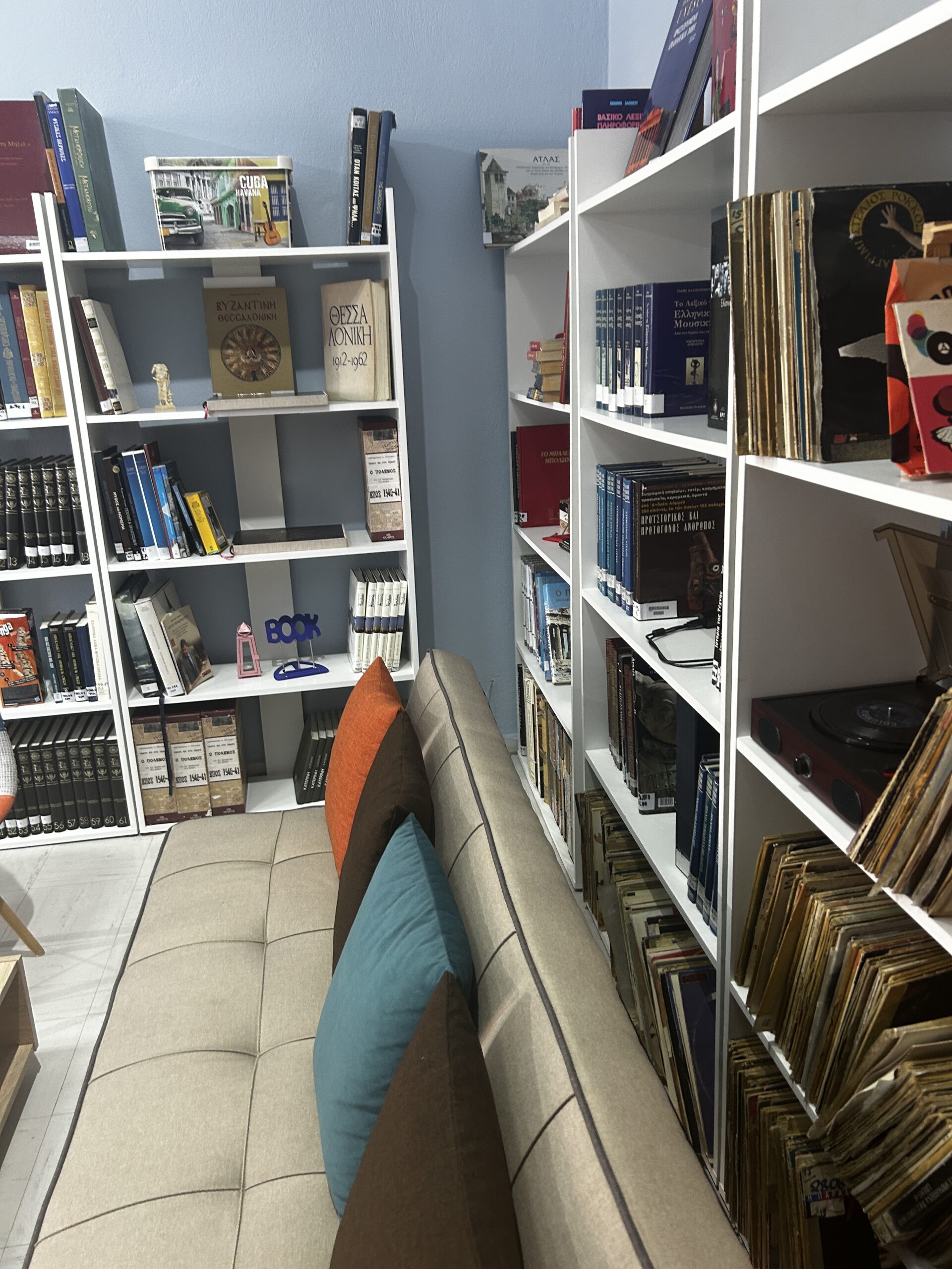 Από τις σημάνσεις που εξηγούν τις κατηγορίες, τα έπιπλα, τον τρόπο που είναι στημένα τα βιβλία μέχρι και την μικρή δισκοθήκη και το πικ απ, όλα συμβάλλουν ώστε να κρατήσουν τον επισκέπτη στο χώρο και να του γεννήσουν την επιθυμία να το ξαναεπισκεφθεί.