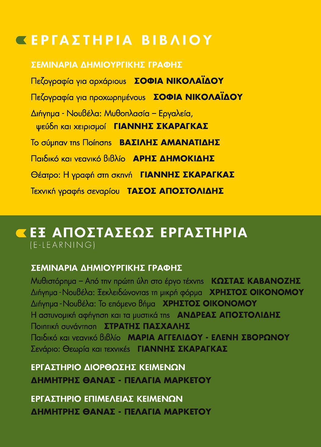 - Πεζογραφία (για προχωρημένους): Γράφω το δικό μου βιβλίο