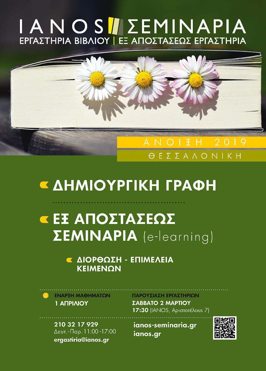 IANOS | ΕΡΓΑΣΤΗΡΙΑ ΒΙΒΛΙΟΥ | ΣΕΜΙΝΑΡΙΑ | ΑΝΟΙΞΗ 2019