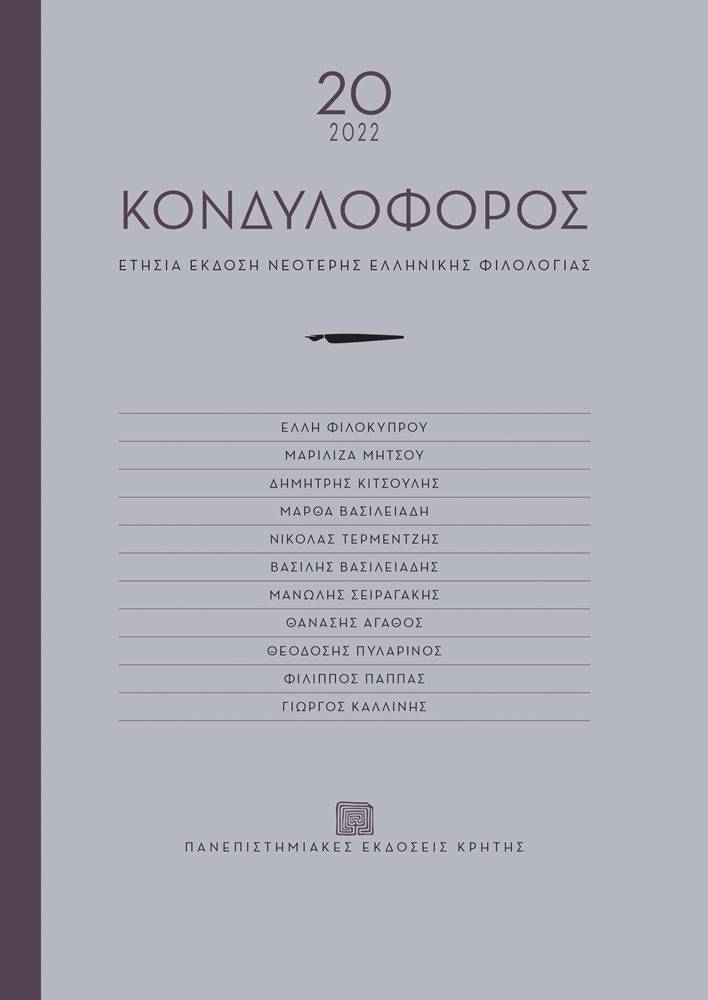 Κυκλοφόρησε ο τόμος 20 (2022) της ετήσιας έκδοσης Νεότερης Ελληνικής Φιλολογίας Κονδυλοφόρος, με 276 σελίδες.