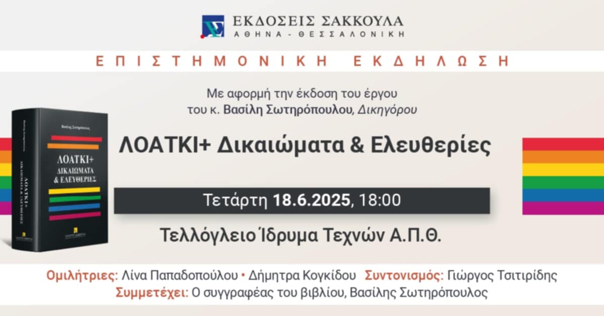 Η υπεράσπιση των ΛΟΑΤΚΙ+ δικαιωμάτων δεν αφορά αποκλειστικά μια “κοινότητα”, αλλά συνιστά θεμελιώδη προϋπόθεση για τη δημοκρατική λειτουργία και τη διατήρηση της κοινωνικής συνοχής, της ισότητας και της αξιοπρέπειας όλων των πολιτών. Μέσα σε αυτό το πλαίσιο, η έκδοση του βιβλίου ΛΟΑΤΚΙ+ Δικαιώματα & Ελευθερίες του Βασίλη Σωτηρόπουλου αποκτά κρίσιμη σημασία γιατί δεν περιορίζεται στη νομική τεκμηρίωση των δικαιωμάτων των ΛΟΑΤΚΙ+ προσώπων αλλά παρέχει ένα ισχυρό εργαλείο κατανόησης, διεκδίκησης και ενδυνάμωσης. Σε μια περίοδο που τα δικαιώματα δεν είναι δεδομένα, αλλά διαρκώς υπό διαπραγμάτευση, η συμβολή τέτοιων έργων δεν είναι απλά σημαντική. Είναι αναγκαία.