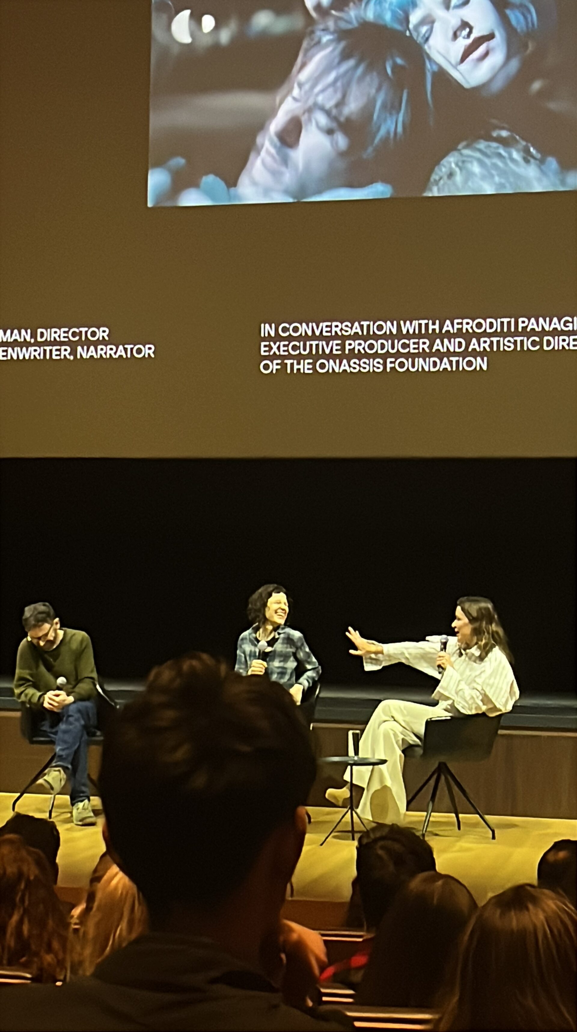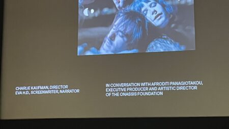 Το event ξεκίνησε με την καλλιτεχνική διευθύντρια του ιδρύματος, Αφροδίτη Παναγιωτάκου να υποδέχεται στην σκηνή τον Kaufman μαζί με την σεναριογράφο και ποιήτρια Eva H.D. . Ο πρώτος έδωσε έναν πολύ γλυκό ελληνικό χαιρετισμό, ενώ η Eva μας εξήγησε πόσο χαρούμενη είναι που η ταινία προβάλλεται επιτέλους σε ελληνικό κοινό μιας και είναι εξ ολοκλήρου γυρισμένη στην Αθήνα.