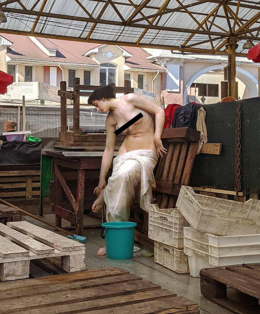Ο Ουκρανός καλλιτέχνης Alexey Kondakov βάζει μορφές από κλασικούς πίνακες στον κόσμο του σήμερα και το αποτέλεσμα είναι πραγματικά μαγικό. Τοποθετεί κλασικές φιγούρες σε μετρό, αγορές, αυτοκίνητα και πολλά άλλα συνηθισμένα μέρη για εμάς, αλλά αρκετά ασυνήθιστα για ημίγυμνες μορφές αναγεννησιακών έργων. Το έργο του δημιουργεί μια ενδιαφέρουσα αντίθεση μεταξύ της ευαίσθητης και εκφραστικής αναγεννησιακής τέχνης και των μάλλον μουντών και βαρετών σκηνών της απλής καθημερινής ζωής.