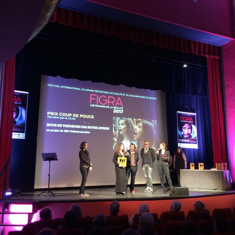 ΒΡΑΒΕΙΟ: Την ίδια χρονιά το «Δε θα πουλήσουμε το μέλλον μας» κέρδισε το βραβείο Prix Coup de Pouce στο φεστιβάλ FIGRA, γεγονός που άνοιξε και το δρόμο για τη συμπαραγωγή με τη δημόσια τηλεόραση της Γαλλίας, France 3 και η France 3 Corse.
