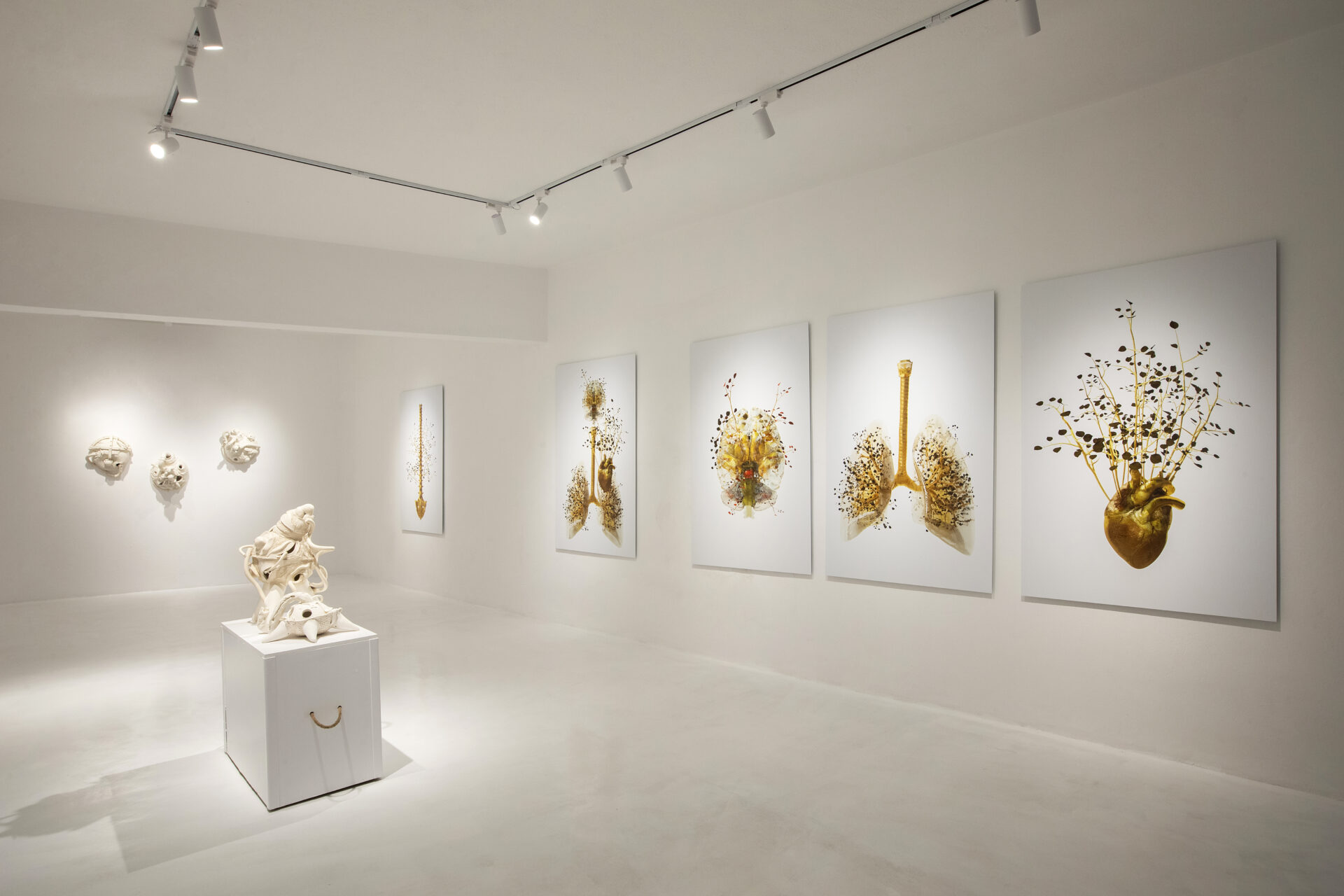 Ο Costas Picadas μας προσκαλεί σε έναν κόσμο όπου η τέχνη συνυπάρχει άψογα με την τεχνολογία. Η σειρά των εκτυπώσεών του, που περιλαμβάνει τα έργα «Γόνατο», «Καρδιά», «Εγκέφαλος» και «Πνεύμονες», μαγεύει με τα υπερρεαλιστικά χρυσά όργανα και τα φύλλα που φυτρώνουν μοναχικά μέσα σε ένα κατάλευκο χαρτί. Ως ένας ευέλικτος καλλιτέχνης πολλών μέσων, ο Costas Picadas κινείται άνετα μεταξύ ζωγραφικής, φωτογραφίας και βίντεο. Εστιάζοντας σε ψηφιακές εκτυπώσεις, που βασίζονται σε τρισδιάστατα μοντέλα ανθρώπινης ανατομίας, αποκαλύπτει την περίπλοκη ομορφιά της κυτταρικής ζωής σε μικροκοσμική και μακροκοσμική κλίμακα, δένοντας τα έργα του αρμονικά με τα εντυπωσιακά γλυπτά του Κατσιλάκη.
