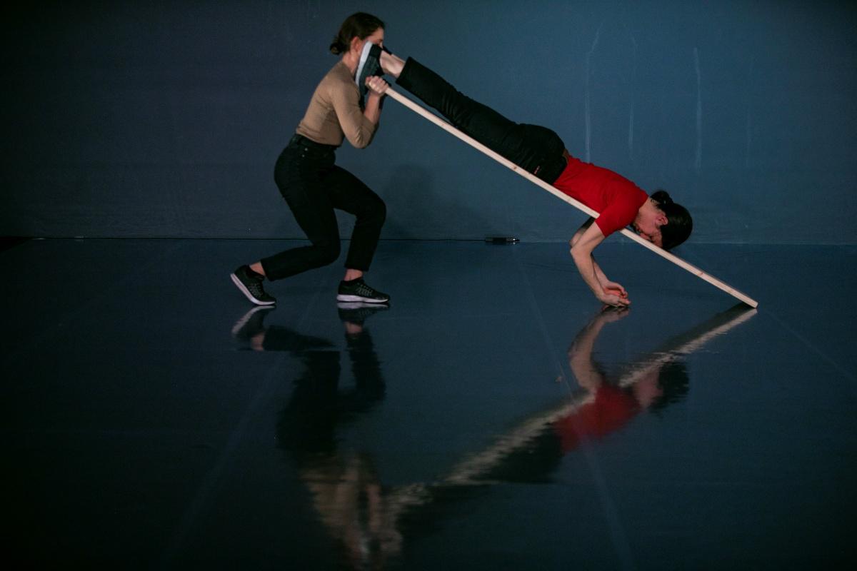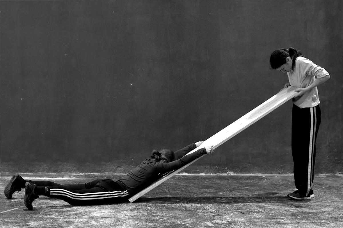 Μια ξύλινη σανίδα και δύο χορεύτριες. Αυτό είναι όλο; Μπορεί, αλλά και προφανώς όχι. Παράδοξη συνθήκη, αλλά και εύστοχος περιορισμός για να ερευνήσει κανείς τα όρια της κινητικής επινοητικότητας και να μελετήσει το χορευτικό σώμα επί τω έργω.