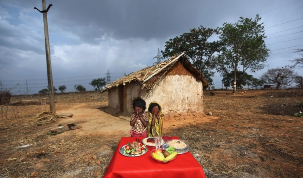 Μια σειρά φωτογραφιών με θέμα την πείνα στην Ινδία που δείχνουν χωρικούς να ποζάρουν δίπλα σε τραπέζια γεμάτα με ψεύτικα φαγητά έχει προκαλέσει έντονες αντιδράσεις στο Διαδίκτυο.