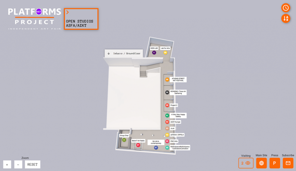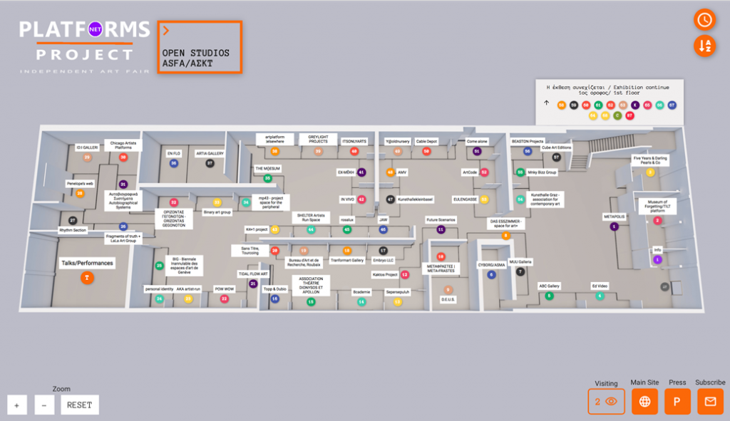 Μέσω μιας ψηφιακής κάτοψης του εκθεσιακού χώρου “Νίκος Κεσσανλής” της Ανωτάτης Σχολής Καλών Τεχνών, με τις πλατφόρμες τοποθετημένες στα ψηφιακά τους περίπτερα, ο θεατής θα μπορεί πατώντας κλικ πάνω στο αριθμό και το όνομα της πλατφόρμας ,να δει έργα που θα εκθέτει κάθε καλλιτέχνης της ομάδας (video-art, ζωγραφική, φωτογραφία, installations κτλ). Ο επισκέπτης του νέου Platforms Project Net βιώνοντας μια νέα διαδραστική εμπειρία, θα έχει τη δυνατότητα να έρθει διαδικτυακά σε άμεση επαφή και διάλογο με τους καλλιτέχνες.