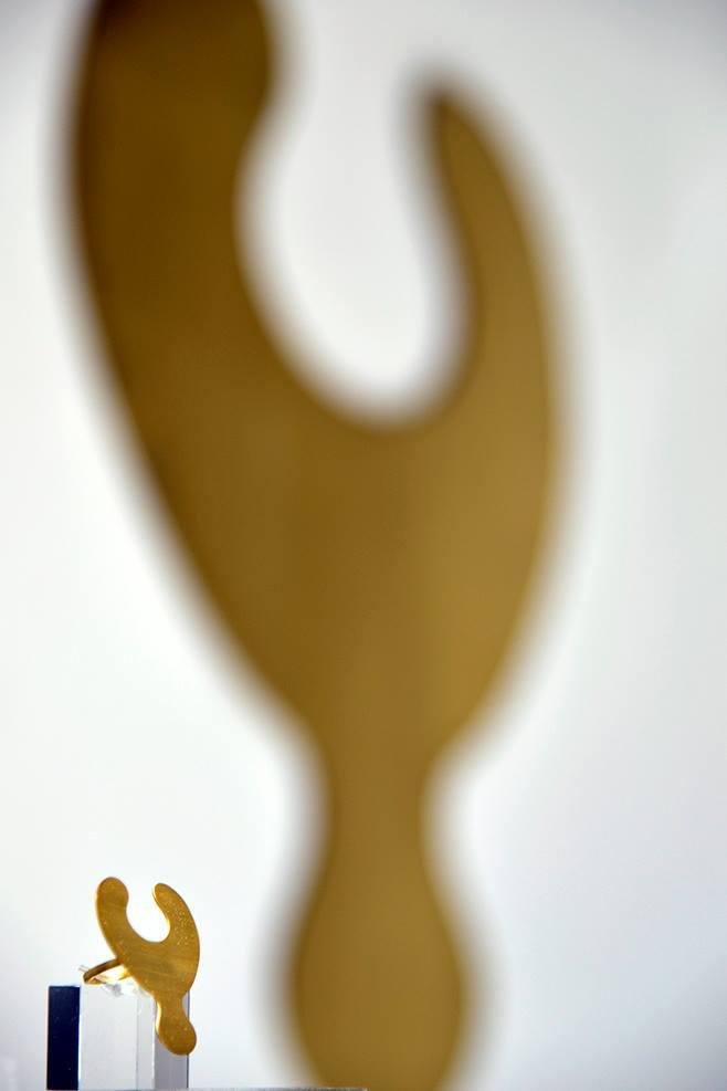 “Αυτή την φορά αισθάνθηκα έντονα την ανάγκη να αποδράσω για λίγο από τον μικρόκοσμο που ζει και ανασαίνει η τέχνη του κοσμήματος και να προσεγγίσω φόρμες που ήδη κυριαρχούν στο εικαστικό σύμπαν που μέσα του δημιουργώ, ονειρεύομαι και ταξιδεύω, υπό τους όρους μιας μεγαλύτερης κλίμακας.