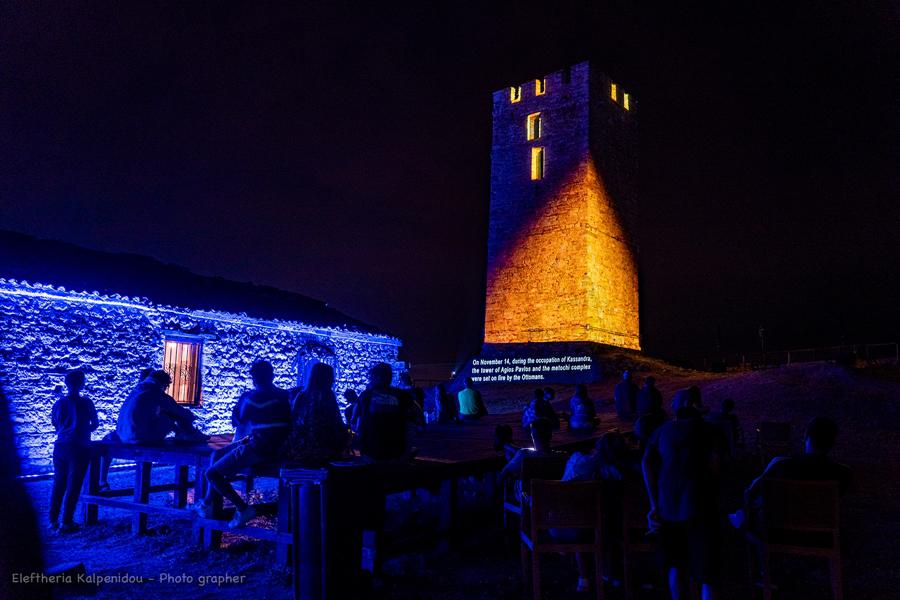 ΣΥΝΤΕΛΕΣΤΕΣ: Συντονισμός εκδήλωσης: Γεώργιος Σκιαδαρέσης, Αν. Προϊστάμενος Εφορείας Αρχαιοτήτων Χαλκιδικής και Αγίου Όρους Εργασίες Συντήρησης – Αποκατάστασης Πύργου: Κωνσταντία Δρόσου πολιτικός μηχανικός Επιστημονική επιμέλεια παραγωγής: Ιωάννης Κανονίδης, επίτιμος Έφορος Αρχαιοτήτων Νίκος Μερτζιμέκης, αρχαιολόγος Αρχοντία Πολυζούδη, αρχαιολόγος Βαλεντίνη Αδάμου, αρχιτέκτονας – αναστηλώτρια Σχεδιασμός, Σκηνοθεσία, 3d Projection Mapping: Στάθης Μήτσιος