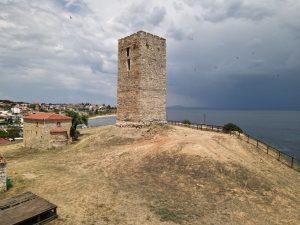 Καθώς πλησιάζεις το λόφο που φιλοξενεί τον έναν από τους τρεις πύργους της Χαλκιδικής, οι άλλοι δύο είναι στη Σάνη και την Ουρανούπολη, ένα μαγικό μπλε υποβάλει στο τοπίο την αίσθηση ενός μυστηρίου αλλά και της περικύκλωσης από τη θάλασσα που τον περιβάλλει.