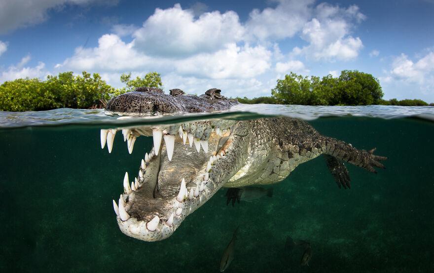 Αρπακτικό και θήραμα, φωτογραφήθηκαν στα ανοικτά των ακτών του Jupter, στη Florida. “Ο ήλιος έπεφτε και ο φωτισμός ήταν απίθανος”, λέει ο φωτογράφος Tanner Mansell. “Όταν οι καρχαρίες επιτίθενται, επεκτείνουν τα σαγόνια τους. Ήταν συναρπαστικό να προσπαθήσεις να απαθανατίσεις αυτή τη στιγμή στην κάμερα. Αυτή είναι μια από τις αγαπημένες μου στιγμές και αγαπημένες μου λήψεις όλων των εποχών. ”