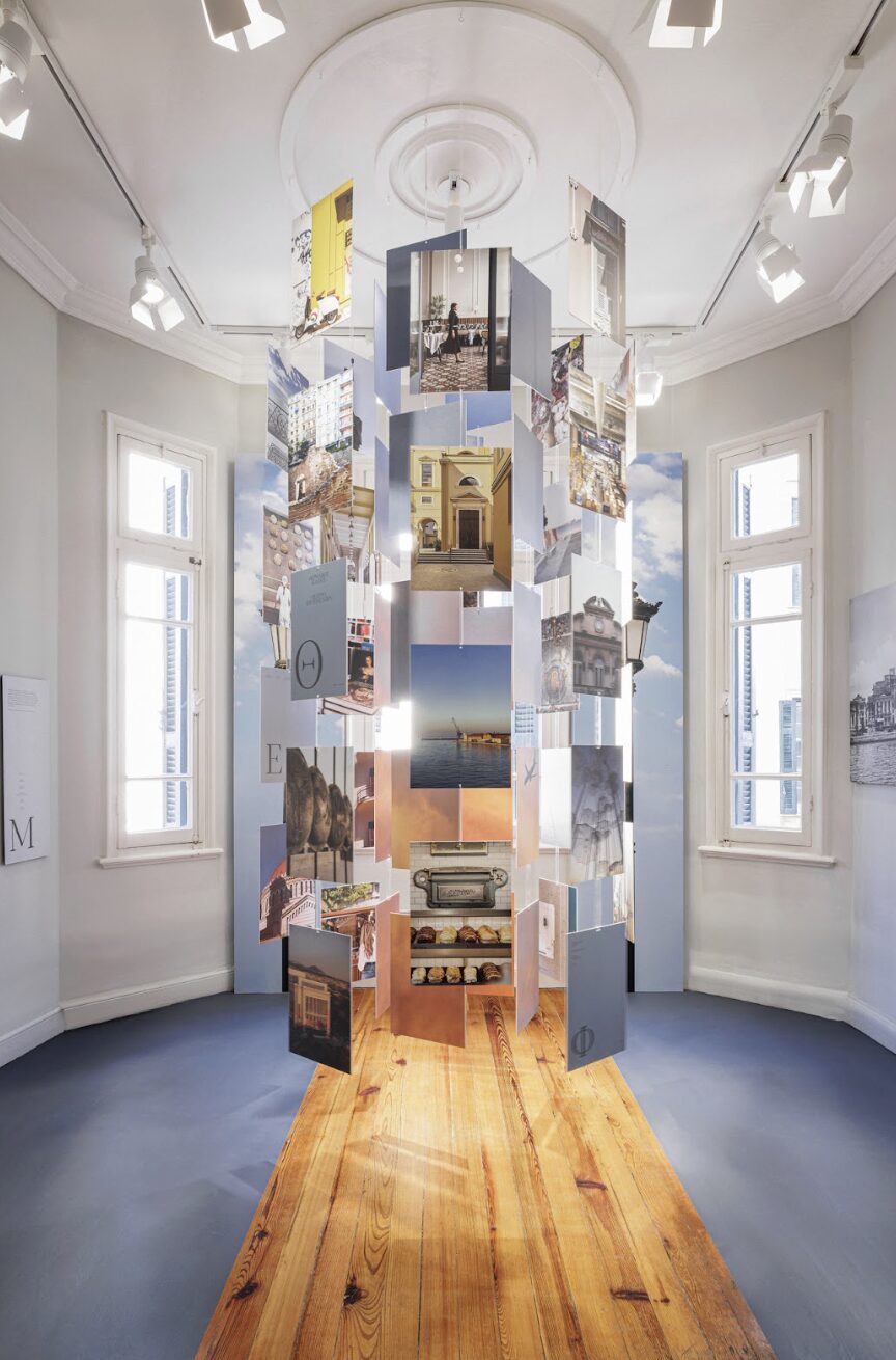 Στην είσοδο του κτιρίου, υπερμεγέθεις φωτογραφίες από το λεύκωμα, μια σκηνοθετημένη ηχητική παραγωγή και ένα γευστικό καλωσόρισμα εισήγαγαν τους προσκεκλημένους στο πνεύμα της έκθεσης. Η πολυδιάστατη εμπειρία συνεχίστηκε στον πρώτο όροφο, όπου στεγάζονται τα γραφεία του περιοδικού. Εκεί, το Photo Art Installation πρωταγωνίστησε, παρουσιάζοντας 50 επιλεγμένες εικόνες από το λεύκωμα, οι οποίες συνέθεταν μια ενιαία οπτική αφήγηση για την πόλη. Περιμετρικά της επιβλητικής art κατασκευής αναπτύχθηκαν επιλεγμένες ιστορικές φωτογραφίες του Μεσοπολέμου, εμπλουτίζοντας τον διάλογο παρελθόντος και παρόντος. Στο Screening Room, ένα behind-the-scenes video αποκάλυψε τη δημιουργική πορεία των συντελεστών της έκδοσης, φωτίζοντας τις στιγμές πίσω από το φωτογραφικό ταξίδι.