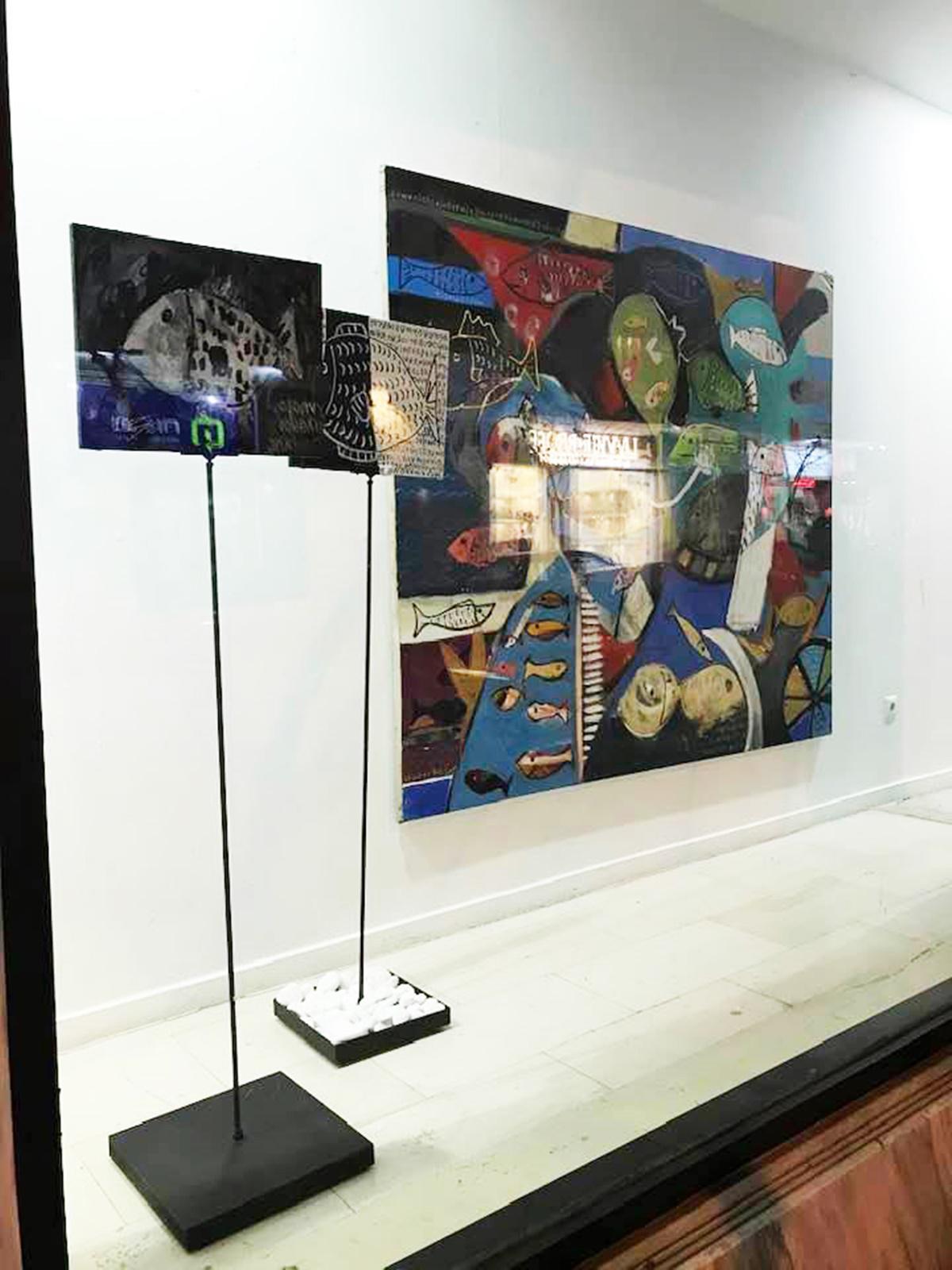 Στην δεύτερη βιτρίνα βυθός με ψάρια, έργο μεγάλων διαστάσεων του 2010 που συνοδεύεται και από δύο κατασκευές ψαριών 2019. Στην τρίτη βιτρίνα δύο τοπία σε λάδι του 2020, ένα τοπίο, άποψη της Σιάτιστας και κάτω ένα μέρος από την σειρά Μορφές Χυτηρίου. Ξύλινα γλυπτά που διακρίνονται μορφές ανθρώπων και ζώων με τίτλους όπως ο κος Γρανάζης, Γυναίκα, Γυναικείο πορτρέτο με μαύρο πρόσωπο κ.α.