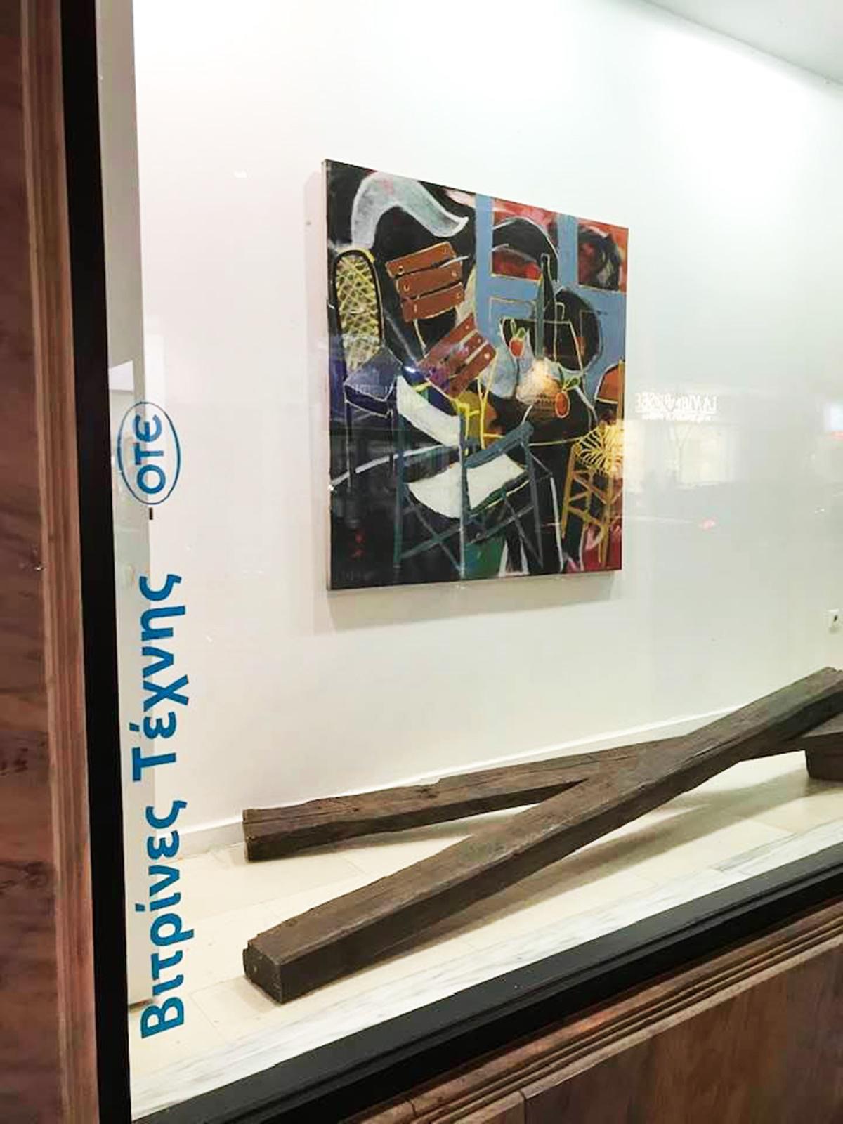 Τα έργα που εκθέτει στις Βιτρίνες Τέχνης στην Θεσσαλονίκη παρουσιάζονται για πρώτη φορά. Στην πρώτη βιτρίνα δεσπόζει νεκρή φύση με τραπέζι και καρέκλες μπροστά στην πόρτα του μπαλκονιού του ατελιέ. Έξω μαύρο και κόκκινο σκοτάδι αναμιγνύεται με τον εσωτερικό χώρο.