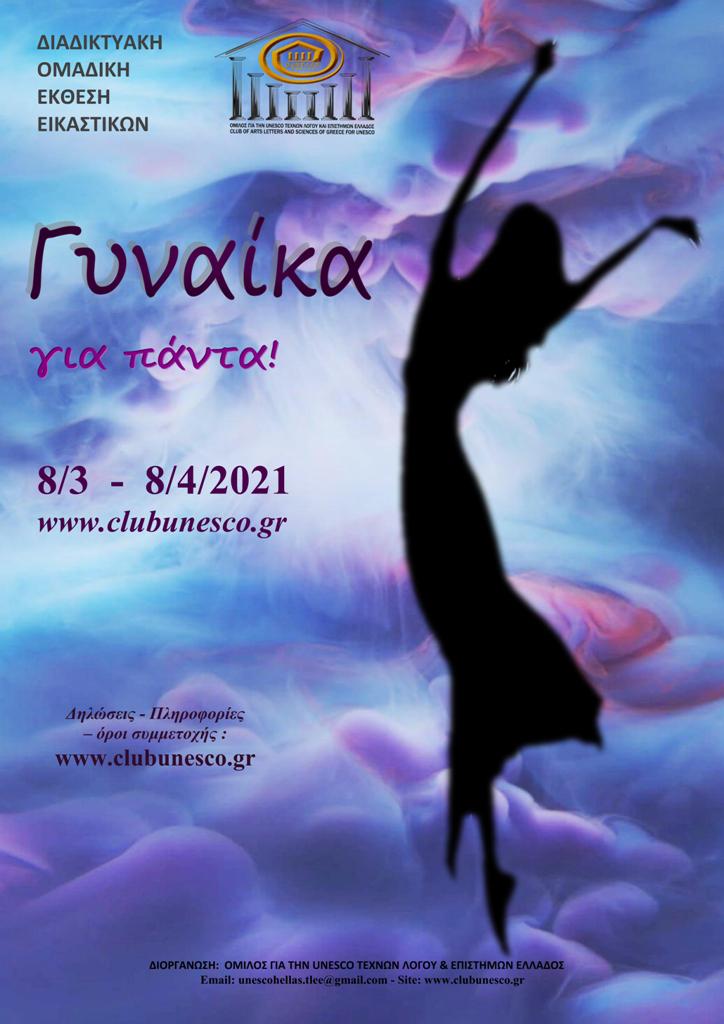 Ο Όμιλος για την UNESCO Τεχνών, Λόγου & Επιστημών Ελλάδος, συνεχίζει τη δημιουργία διαδικτυακών εκθέσεων στον καιρό της πανδημίας, με την πρώτη του ομαδική έκθεση εικαστικών για το 2021, να είναι αφιερωμένη στη γυναίκα, με αφορμή την Ημέρα της γυναίκας.