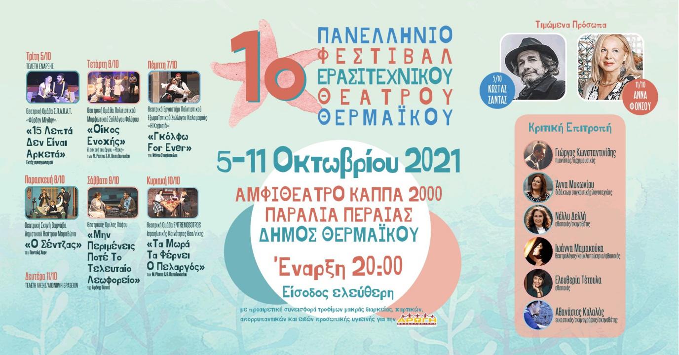 Το Φεστιβάλ θα φιλοξενήσει πέντε (5) θεατρικές ομάδες από όλη την Ελλάδα και την Κύπρο, οι οποίες θα διαγωνιστούν και θα διεκδικήσουν συνολικά 15 βραβεία: Καλύτερης Παράστασης, Σκηνοθεσίας, Ερμηνείας Συνόλου, Α΄ & Β΄ Αντρικού Ρόλου, Α΄ & Β΄ Γυναικείου Ρόλου, Σκηνογραφίας, Ενδυματολογίας, Μουσικής Σύνθεσης, Μουσικής Επιμέλειας, Χορογραφίας/Κίνησης, Φωτισμών, Βραβείο Κοινού και Βραβείο Πολιτιστικών Συλλόγων Δήμου Θερμαϊκού. Τιμώμενα Πρόσωπα ο ΚΩΣΤΑΣ ΣΑΝΤΑΣ και η ΑΝΝΑ ΦΟΝΣΟΥ.