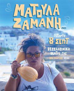 Η Ματούλα Ζαμάνη, συμμετέχοντας στο 7ο Φεστιβάλ Δάσους 2021, έρχεται την Τετάρτη 8 Σεπτεμβρίου 2021 στη Θεσσαλονίκη και συγκεκριμένα στο θέατρο Γης για μια δυνατή συναυλία.