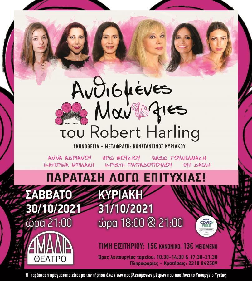 Το γνωστό και αγαπημένο σε όλους θεατρικό έργο «Ανθισμένες Μανόλιες» του Ρόμπερτ Χάρλινγκ θα ανθίσει και στη Θεσσαλονίκη μετά την επιτυχημένη του πορεία στην Αθήνα, για τρεις παραστάσεις στις 15,16 και 17 Οκτωβρίου στο θέατρο Αμαλία. σε σκηνοθεσία Κωνσταντίνου Κυριακού, με τις Άννα Αδριανού, Ηρώ Μουκίου, Βάσω Γουλιελμάκη, Εύη Δαέλη, Κατερίνα Μπιλάλη και Κρίστη Παπαδοπούλου.