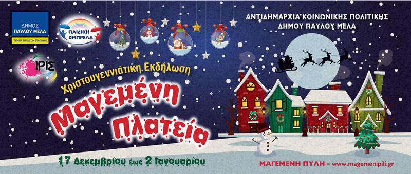 Ένα Χριστουγεννιάτικο θεατρικό και χορευτικό υπερθέαμα για μικρούς και μεγάλους με 15 χορευτές επί σκηνής σε διάφορους ρόλους, έναν Μάγο σε μία ολόκληρη σκηνή Bubble Show, τον Άγγελο με τον Καλικάντζαρό μας και φυσικά τον Άγιο Βασίλη με τα ξωτικά του για το άναμμα του πελώριου στολισμένου Χριστουγεννιάτικου Δέντρου!