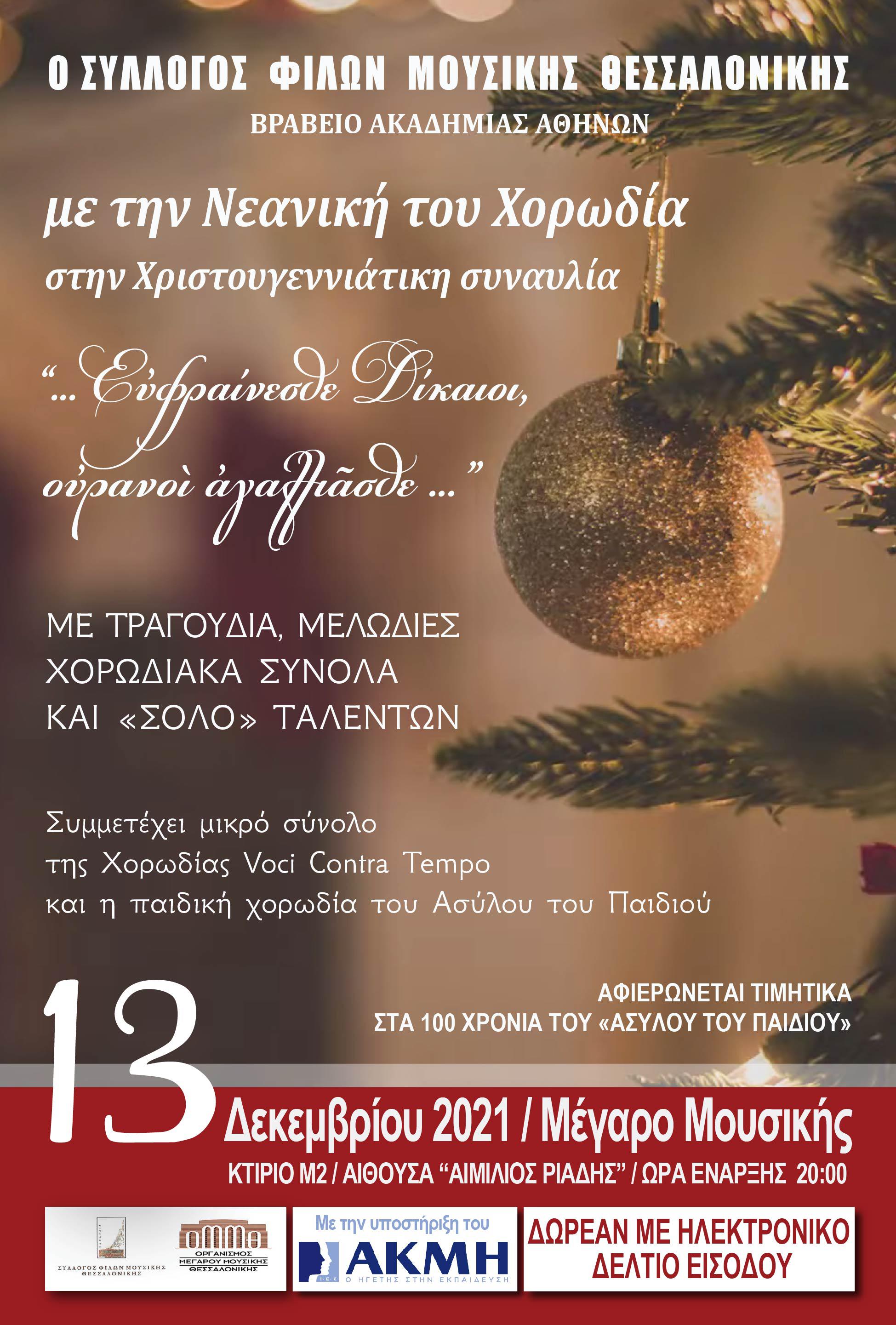 «Χριστούγεννα μαζί» για το Μέγαρο Μουσικής Θεσσαλονίκης και τη Νεανική Χορωδία Συλλόγου Φιλών Μουσικής Θεσσαλονίκης