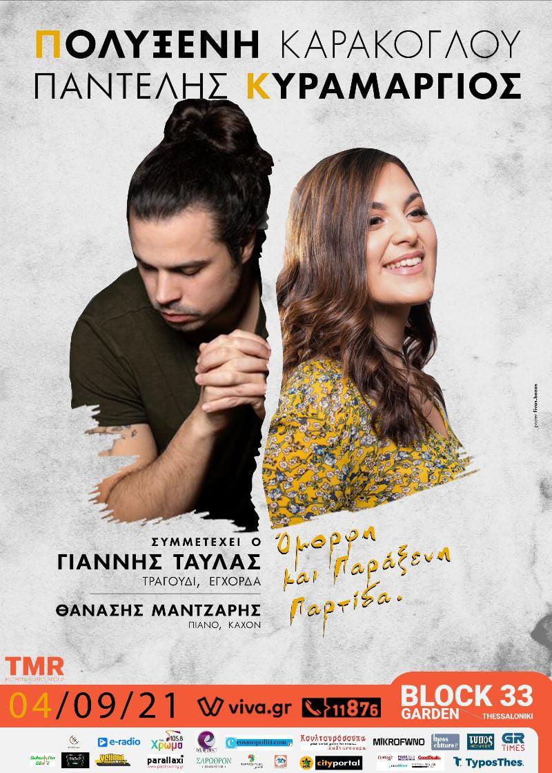 Το Σάββατο 4 Σεπτεμβρίου ο Παντελής Κυραμαργιός και η Πολυξένη Καράκογλου θα ενώσουν τις φωνές τους με τη μουσική παράσταση «Όμορφη και Παράξενη Παρτίδα» και θα μας παρασύρουν σε πανέμορφα μουσικά ταξίδια. Το πρόγραμμά τους περιέχει κομμάτια από την έντεχνη σκηνή του σήμερα, παραδοσιακά τραγούδια από κάθε γωνιά της Ελλάδας, ρεμπέτικα και λαϊκά μεγάλων συνθετών. Στην μουσική τους παρέα, συμμετέχει και ο τραγουδοποιός Γιάννης Ταυλάς, τραγουδώντας και παίζοντας έγχορδα.