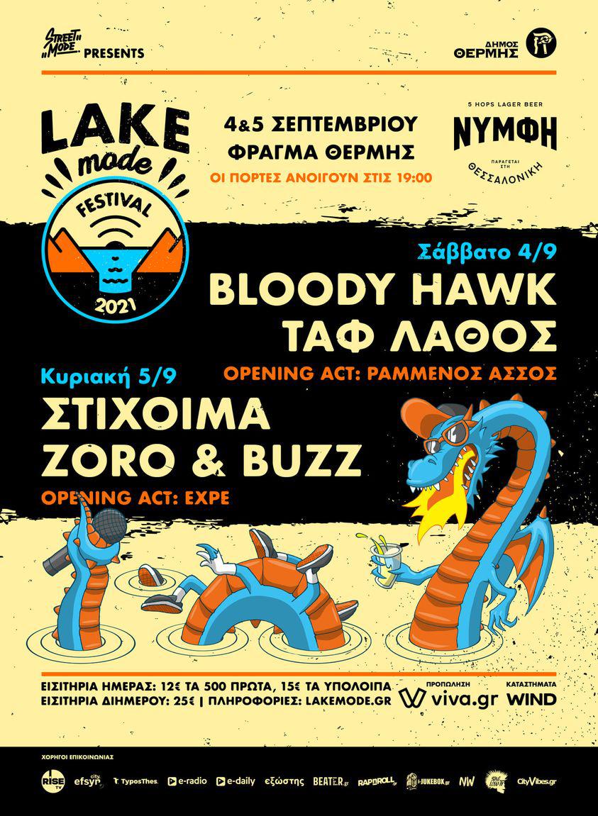 Το Σάββατο 4 Σεπτεμβρίου το 1ο Lake Mode Festival 2021 κάνει πρεμιέρα στο Φράγμα Θέρμης 2021 με τους Ταφ Λάθος και Bloody Hawk. Τη βραδιά θα ανοίξει ο Ραμμένος Άσσος. Zoro & Buzz και Στίχοιμα Live στο Φράγμα Θέρμης
