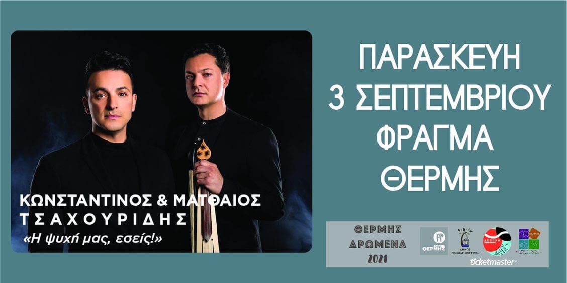 Ο Κωνσταντίνος και ο Ματθαίος Τσαχουρίδης έρχονται με τη συναυλία: «Ψυχή & Σώμα» στο Φράγμα Θέρμης στο πλαίσιο των εκδηλώσεων Θέρμης Δρώμενα 2021.