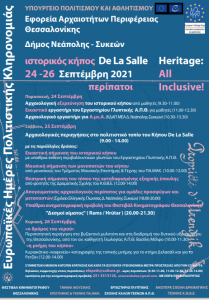 Σάββατο, 25 Σεπτεμβρίου Αρχαιολογικές περιηγήσεις στο πολιτιστικό τοπίο του Κήπου De La Salle (9.00 – 14.00) με τις παράλληλες δράσεις:
