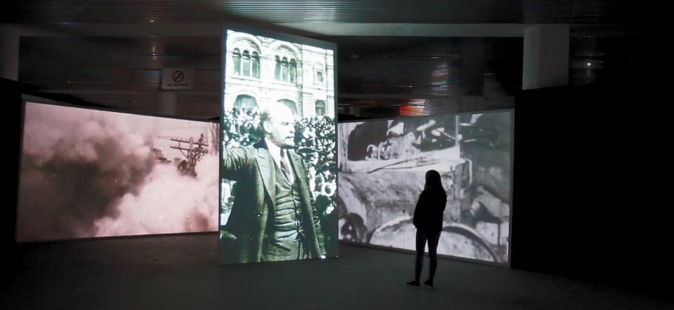 Επεξεργασία Οπτικοακουστικού Υλικού Σκηνοθετική επιμέλεια προβολών & Βίντεο – Γαβρίλος Ψαλτάκης Visitor’s – Αντωνιάδη Ζωή, Κοψιδά Βαλεριάνα, Φουρκιώτης Γιάννης Οι περισσότερες εικόνες ανήκουν στη Συλλογή Κωστάκη του ΚΜΣΤ. Στο πλαίσιο της έκθεσης προβάλλονται οι εμβληματικές ταινίες του Σεργκέι Άιζενσταϊν, Θωρηκτό Ποτέμκιν, Οκτώβρης και Απεργία. Δικαιώματα ταινιών: New Star. Για την παρουσίαση των χαρακτήρων της επανάστασης χρησιμοποιήθηκε ως πηγή έμπνευσης η ταινία του Herman Axelbank «Tsar to Lenin”, 1937.
