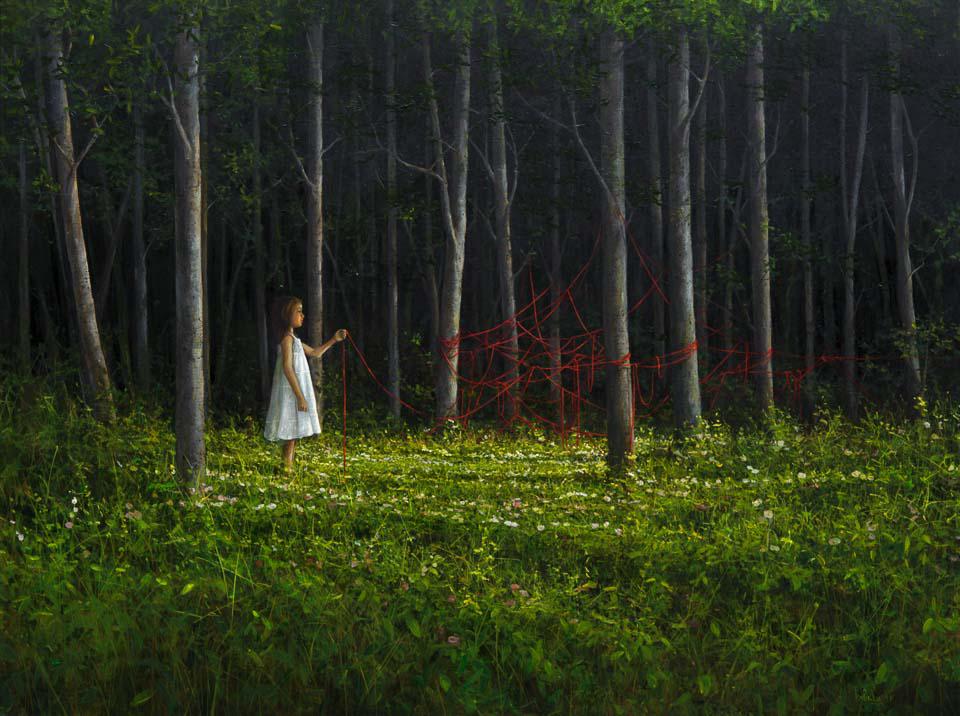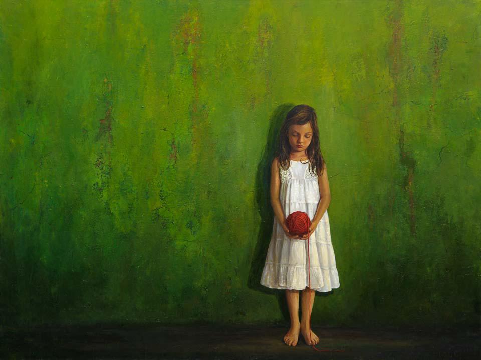 «Αυθόρμητα μου έρχεται η εικόνα ενός ανθρώπου που κινείται μέσα σε έναν λαβύρινθο χωρίς το μίτο όμως στα χέρια του. Χαμένος στο δάσος των προσδοκιών της πραγματικότητας, των ψευδαισθήσεων, των αντιθέσεων του παρελθόντος – του παρόντος – του μέλλοντος. Το χρώμα που θα χρησιμοποιούσα θα ήταν το πράσινο. Το σκούρο πράσινο για να υποδηλώσει το φόβο και την αβεβαιότητα. Το φωτεινό πράσινο για να επισημάνει την ελπίδα. Το γαλαζοπράσινο για την προσδοκία της λύτρωσης και φυσικά θα υπήρχε και το κόκκινο του μίτου, του πάθους, της γέννησης, της δύναμης».
