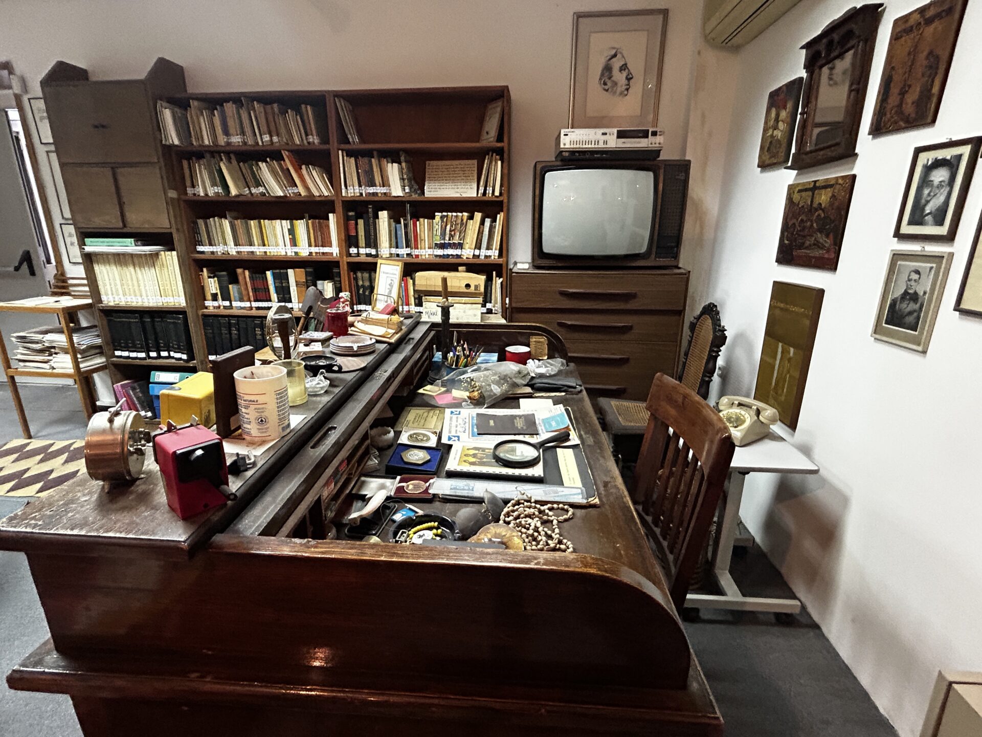 Ο επισκέπτης μπορεί να έρθει σε επαφή με την βιβλιοθήκη του Γιώργου Ιωάννου, η οποία αποτελείται κατά προσέγγιση από 6.000 τόμους βιβλίων και 2.000 τεύχη περιοδικών, με τις εκδόσεις των λογοτεχνικών του έργων και τις μεταφράσεις τους στην αγγλική, γαλλική και ρωσική γλώσσα, με φωτογραφίες του -προσωπικές και οικογενειακές- σκίτσα, την προτομή του από τη γλύπτρια Ασπασία Παπαδοπεράκη, τους δίσκους και τους πίνακές του, αλλά το γραφείο του, έτσι ακριβώς όπως το άφησε πριν φύγει από την ζωή, το κρεβάτι του που ήταν σχεδιασμένο από τον Τσαρούχη, τα ρούχα του, τη μαύρη τσάντα του και πολλά άλλα προσωπικά του αντικείμενα.
