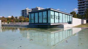 Σύμφωνα με τον καλλιτέχνη “το περίπτερο του κήπου των Γλυπτών προτείνει κάποιου είδους ρωγμή στην κατά τα άλλα ομοιογενή αναπαράσταση της κοινωνίας”, του οποίου ο χώρος, πότε αρνητικός και πότε θετικός, καθιστά δυνατή την αφήγησή του μεταξύ μυθοπλασίας και πραγματικότητας. Θεμιτό είναι να προσεγγίσουν το περίπτερο οι περαστικοί ώστε να προσδιοριστούν τα κενά του, προβάλλοντας σκέψεις και προβληματισμούς γύρω από τη χρήση του – φανταστικά σενάρια εξέλιξης. Καθώς ο καλλιτέχνης ανησυχεί ιδιαίτερα για την εξαφάνιση των δημοσίων χώρων παγκοσμίως, στην προκειμένη περίπτωση ο χώρος της έκθεσης , το γυάλινο περίπτερο και ο δημόσιος χώρος της παραλίας, επιτρέπουν τον επαναπροσδιορισμό της χρήσης τους σε συνάρτηση με τις προσδοκίες των ανθρώπων που ζουν στη νέα παραλία. Στη γυάλινη όψη του περιπτέρου διακρίνεται η φράση ‘It is conceivable that she will refuse”. Το κείμενο είναι αμφίβολο όπως και το θέμα ασαφές και ευρύ, ωστόσο η σύντομη φράση δίνει τη δυνατότητα σε διάφορα σενάρια και σκηνές να συμπληρώσουν το νόημα. Τίθεται κάποιου είδους σενάριο βασισμένο σε ερωτήσεις με αναφορά στην ελεύθερη βούληση, στο μέσα και το έξω από τις γυάλινες επιφάνειες του περιπτέρου. “Τι πρόκειται να συμβεί;” Ζήτημα που ούτως ή άλλως πραγματεύεται η φετινή Μπιενάλε με θέμα ” Imagined Homes”.