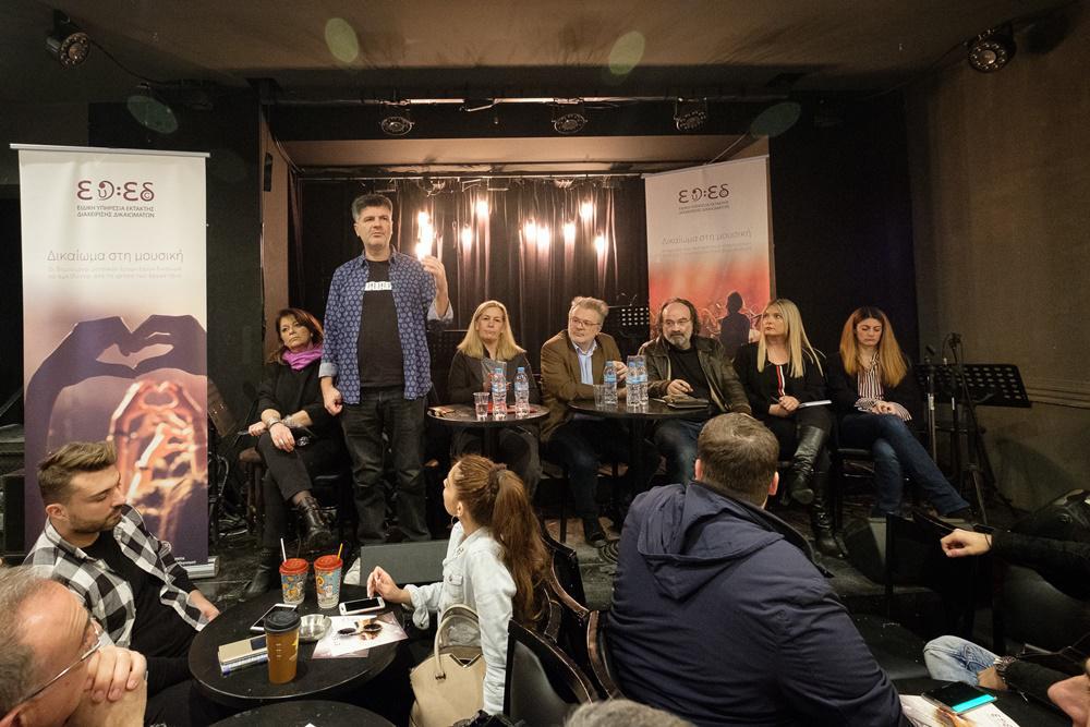 Από πλευράς ΕΥΕΔ ενημέρωσαν και απάντησαν στις ερωτήσεις των δημιουργών, η Προσωρινή Διαχειρίστρια της ΕΥΕΔ Μαρία Βλάχου και τα μέλη του Εποπτικού Συμβουλίου Φοίβος Δεληβοριάς (Πρόεδρος), Άλκηστις Τσίκλου (εκπρόσωπος Warner Chappell Music Hellas, Αντιπρόεδρος), Μαίρη Φασουλάκη (Γραμματέας), Κώστας Καλδάρας (Μέλος) και Βιργινία Κόκιου (εκπρόσωπος Universal Music Publishing, Μέλος). Χαιρετισμό απηύθυνε στα μέλη της ΕΥΕΔ και ο Πρόεδρος του Οργανισμού Πνευματικής Ιδιοκτησίας Γιάννης Αντωνιάδης.
