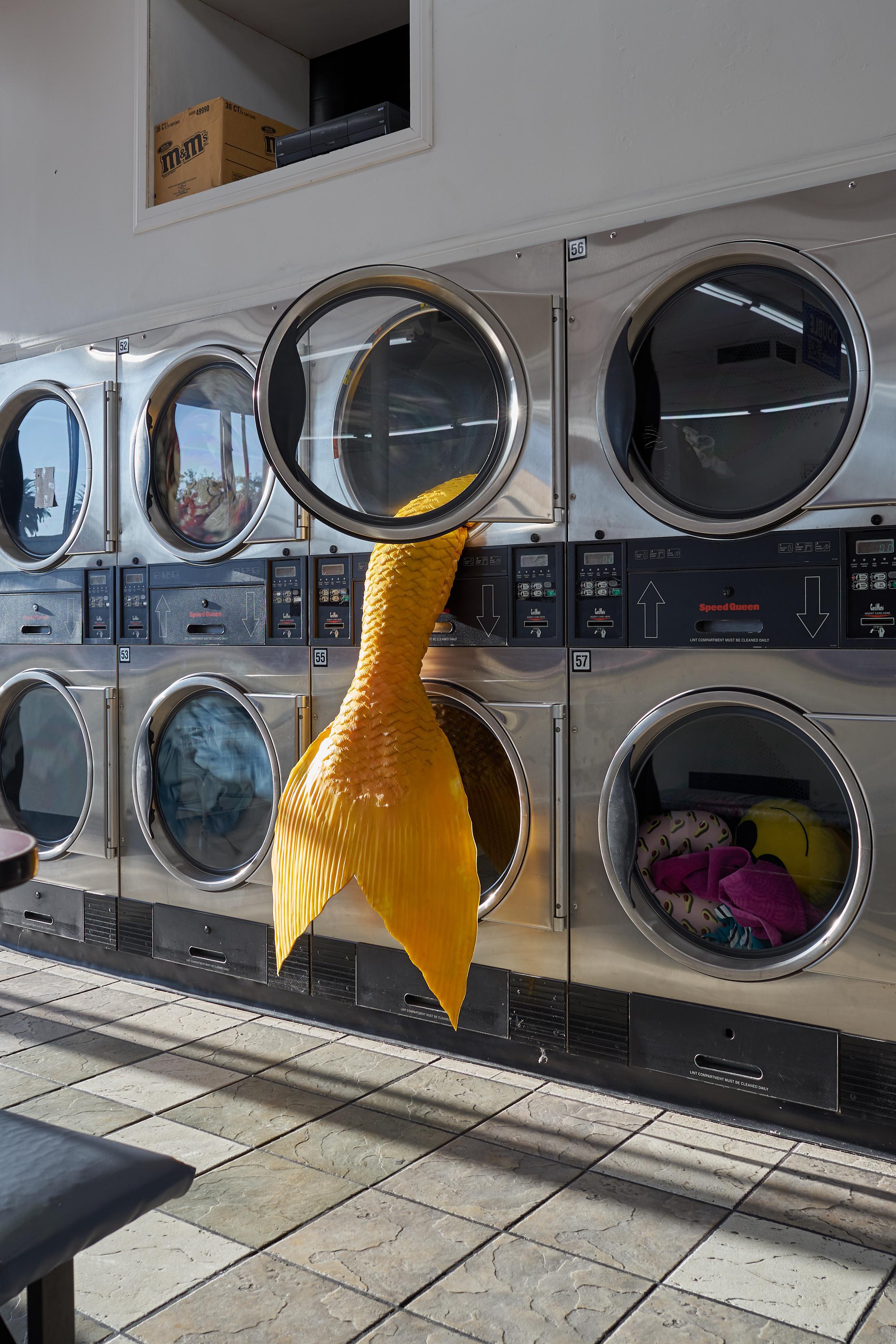 Το καθημερινό έγινε μαγικό, στις αρχές του προηγούμενου μήνα, σε ένα φαινομενικά συνηθισμένο αυτόματο πλυντήριο στο Λος Άντζελες. Ανάμεσα στις πετσέτες και τα υπόλοιπα ρούχα που στροβιλίζονταν στους κάδους των πλυντηρίων, αυτοί που κατέφθαναν φέρνοντας τα άπλυτά τους προς μεγάλη τους έκπληξη ανακάλυψαν ότι από ορισμένες πόρτες των μηχανών κρέμονταν ουρές γοργόνων.