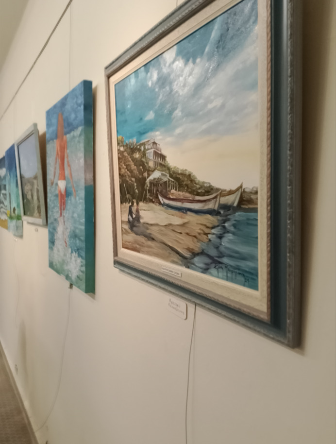 Θαλασσογραφίες, πίνακες σε καμβά, προσωπογραφίες ελαιογραφίες και αγιογραφίες μεταξύ άλλων, κοσμούν από τις αρχές Σεπτεμβρίου τους τοίχους του πολυχώρου, δίνοντας μια νότα πολιτισμού ολόγυρα τους.