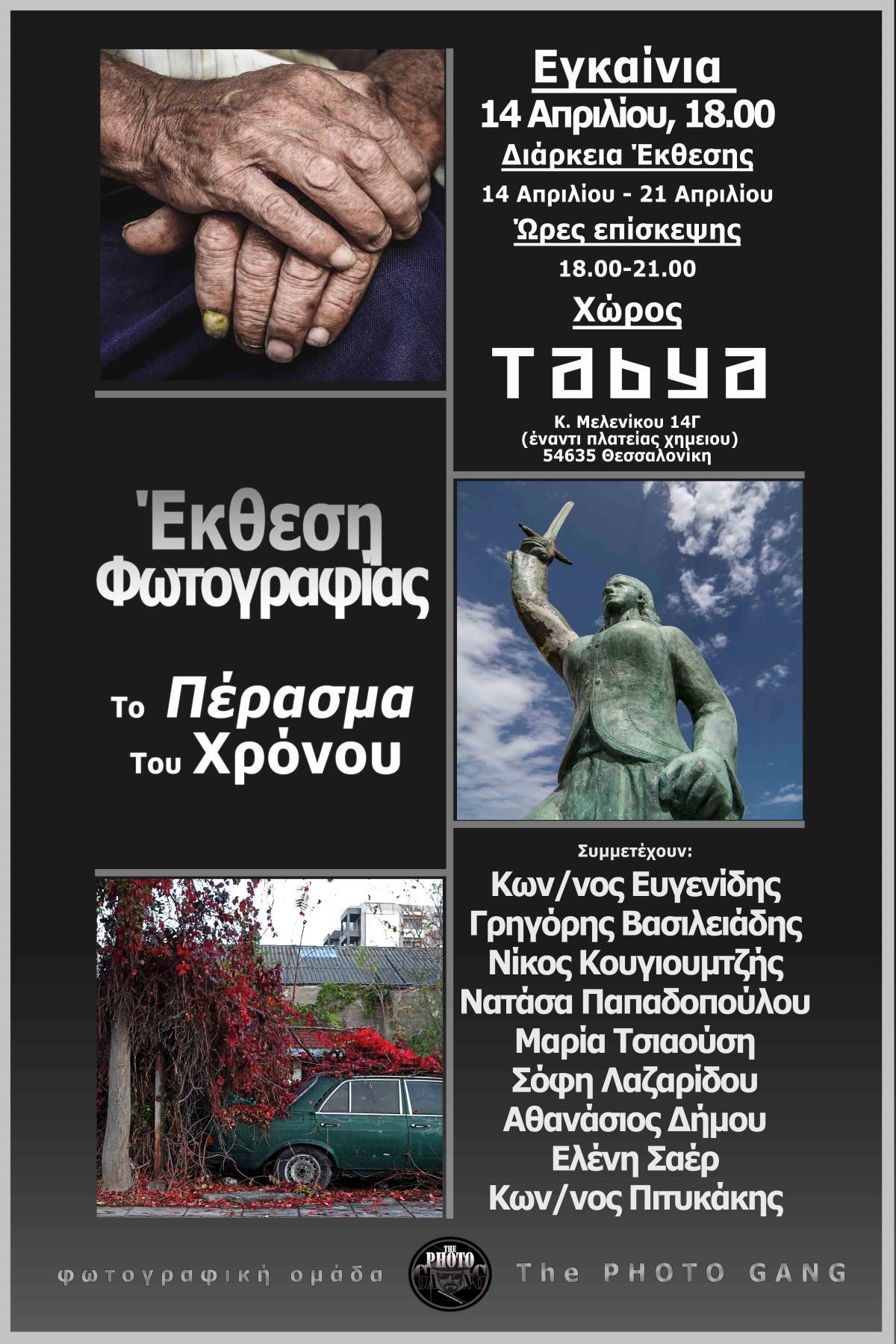 *The PHOTO GANG: 1η ομαδική έκθεση φωτογραφίας με θέμα: Το Πέρασμα Του Χρόνου, Μέρος: Πολυχώρος “Tabya” cafe – bar, Διάρκεια Έκθεσης: 14 – 21 Απριλίου, Ώρες Προβολής: 18:00 – 21:00