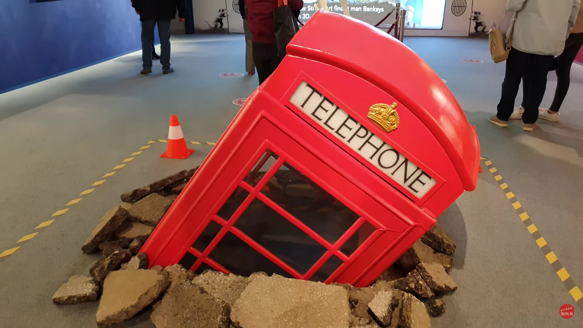Έργα του Banksy, όπως «Ο ελέφαντας στο δωμάτιο», ξαναφτιάχνονται μέσα στις δεκαπέντε αίθουσες της έκθεσης. Το συγκεκριμένο έργο είχε παρουσιαστεί σε μια γκαλερί στο Λος Άντζελες, σε ένα σαλόνι που θύμιζε τη δεκαετία του 1950 και τόνιζε τη φτώχεια και την αδικία στον κόσμο. Στα εγκαίνια στο Λος Άντζελες υπήρχε ένας πραγματικός ελέφαντας στο δωμάτιο, μια πραγματική Αντζελίνα Τζολί και ίσως και ένας πραγματικός Banksy, αλλά αυτό δεν θα το μάθουμε ποτέ.