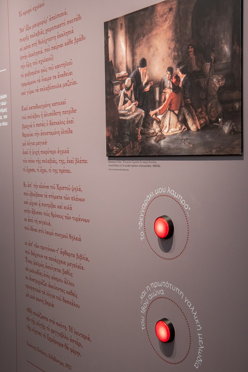 Επιλεγμένα εκθέματα και σύγχρονες διαδραστικές εφαρμογές θα αποπειραθούν να δώσουν απαντήσεις σε αυτή την ουσιαστική, αλλά ελάχιστα γνωστή όψη της ελληνικής παιδείας πριν την Επανάσταση του 1821. Η έκθεση «Πώς μάθαιναν οι Έλληνες γράμματα από την Άλωση μέχρι την Επανάσταση (1453-1821)» μας καλεί να μάθουμε ανάγνωση συλλαβίζοντας γνωστές προσευχές· να ξεφυλλίσουμε σχολικά εγχειρίδια και να αποκρυπτογραφήσουμε τα άγνωστα σε μας «μαθηματάρια»· να ανακαλύψουμε άγνωστες όψεις της μαθητικής ζωής· να εξερευνήσουμε τον χάρτη των σχολών του ελληνισμού· να κάνουμε πειράματα φυσικής· και τέλος, να γράψουμε και το δικό μας όνομα όπως οι μαθητές της εποχής.