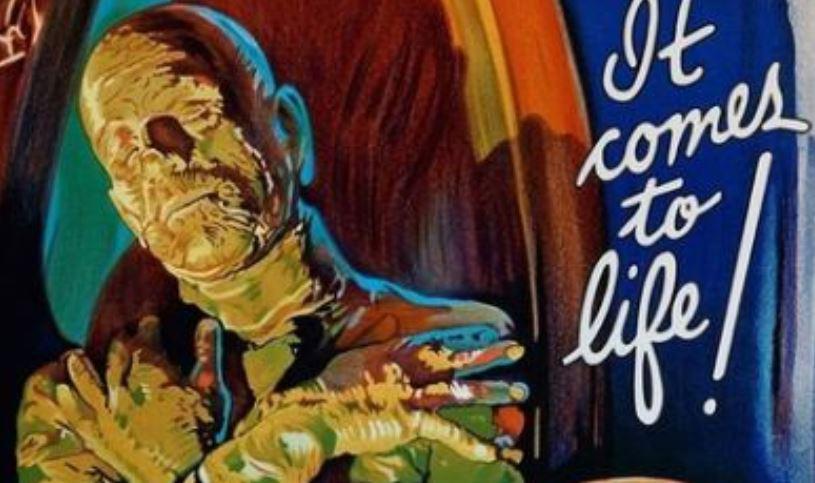 Η έγχρωμη αφίσα που πωλείται τώρα είναι από τη θρυλική ταινία «The Mummy» (Η Μούμια) του 1932 με πρωταγωνιστή τον Μπόρις Κάρλοφ ως Αιγύπτιο ιερέα που ανασταίνεται με φονική αποστολή να εντοπίσει το πνεύμα του απαγορευμένου έρωτά του, της πριγκίπισσας Ankh-es-en-amon, που υποδύθηκε η Ζίτα Γιόχαν.