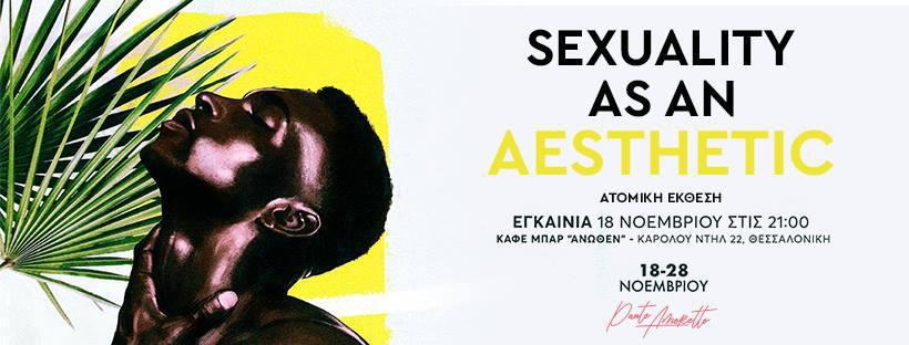 Η εικαστική έκθεση “Sexuality as an Aesthetic” αποτελείται από 18 επιλεγμένα έργα στα οποία ο καλλιτέχνης κάνει εμφανή την διάθεσή του να πειραματιστεί πάνω στην φιλοσοφία της gay art. Άλλωστε ο Dante Amoretto είναι ένας εικαστικός που δεν κρύβει το πάθος του για την Τέχνη αυτή με την έμπνευσή του να βρίσκει αφορμή από καλλιτέχνες όπως ο Michael Turner και να συνεχίζει στην ξυλογλυπτική της ιαπωνικής παράδοσης, τα μάνγκα, την κουλτούρα των gay bear και προφανέστατα την pop art.